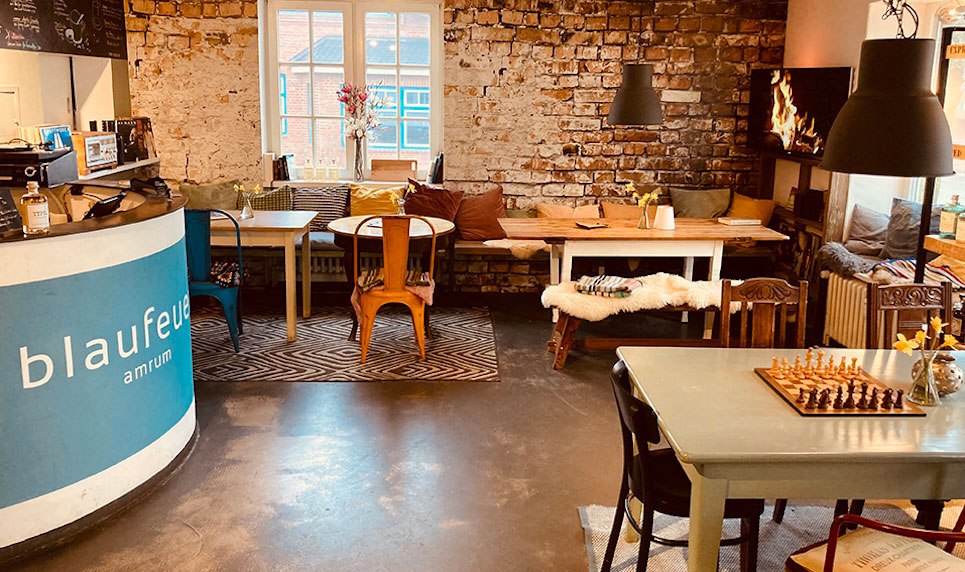 Hier werden alle Gerichte mit viel Liebe frisch gekocht - z.B. die täglich wechselnde Suppe - sehr zu empfehlen. Aber auch viele andere Kleinigkeiten und kleine süße Überraschungen sind im Angebot. Zu ausgesuchter Musik wird auch eine beachtliche Auswahl an Gin serviert.Nebenbei gibt es ausgewählte maritime Kleidung zu kaufen.Sie wollen wissen was "Blaufeuer" bedeutet? Finden Sie es bei einem Besuch dieser besonderen Lokalität heraus.
