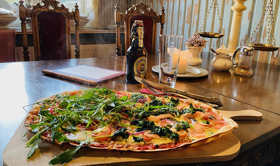 ...das bedeutet „Stube und Küche“ und so sitzt man hier auch in uriger Atmosphäre. Kleine Gerichte, so wie Kaffee, Tee und frische Waffeln sind hier Programm. Im Ortskern von Nebel gelegen kann man am Abend neben einem kalten Bier auch die auf der Insel sehr beliebte, frisch zubereitete Pizza genießen, die es übrigens auch zum Mitnehmen gibt - auch mit Lieferservice.