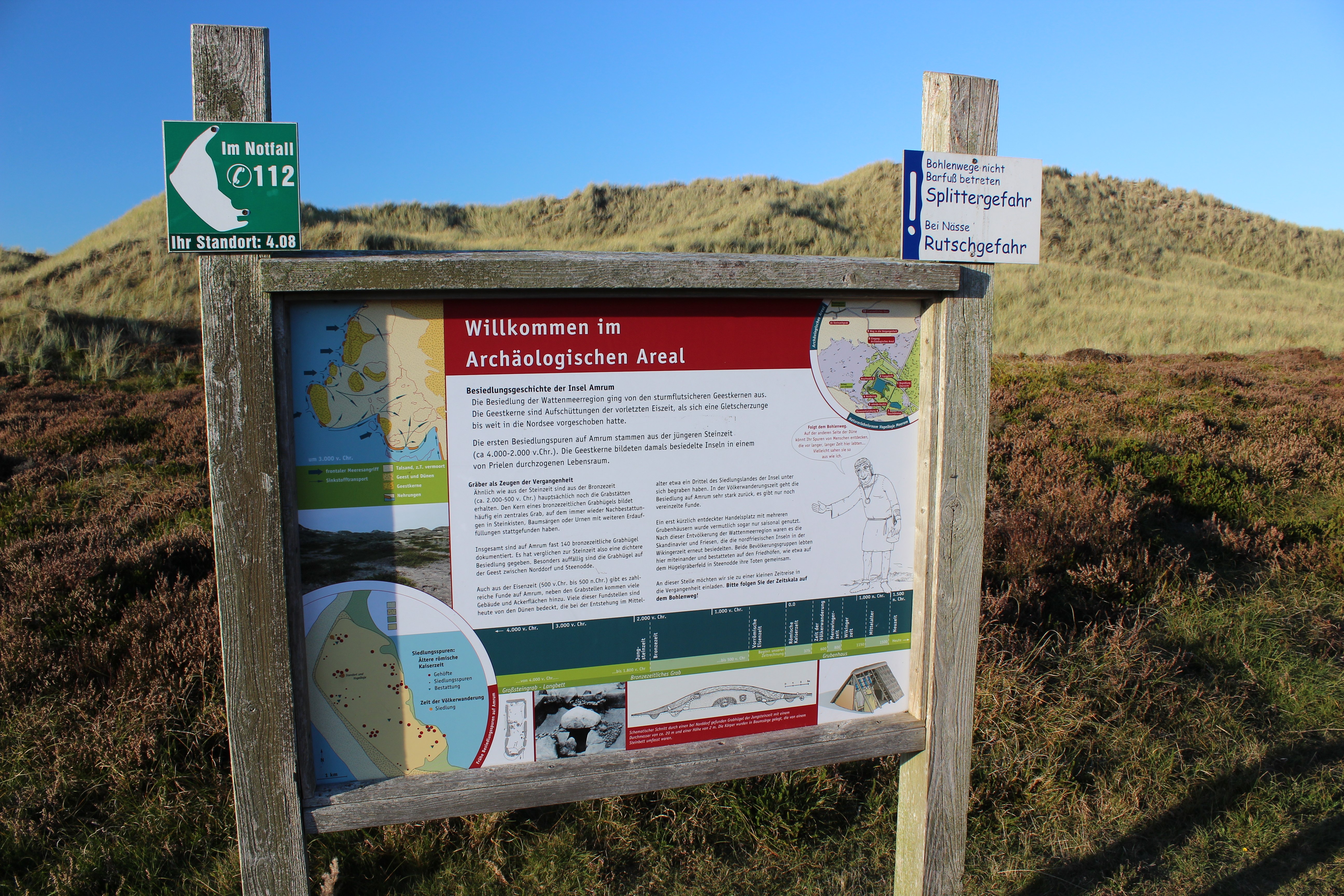 Das rekonstruierte eisenzeitliche Haus ist Teil des archäologischen Areals, nahe dem Naturerlebnisraum Vogelkoje. Das Dünental mit mehreren Hausgrundrissen einer cimbrischen Siedlung aus dem 1. Jh. n. Chr., wurde 2025 um ein Grubenhaus der Bronze- und frühen Eisenzeit ergänzt. Am Rande des Areals finden Sie auch zwei Grabkammern aus der jüngeren Steinzeit (ca. 3000 v. Chr.). Der Öömrang Ferian bietet Führungen an.