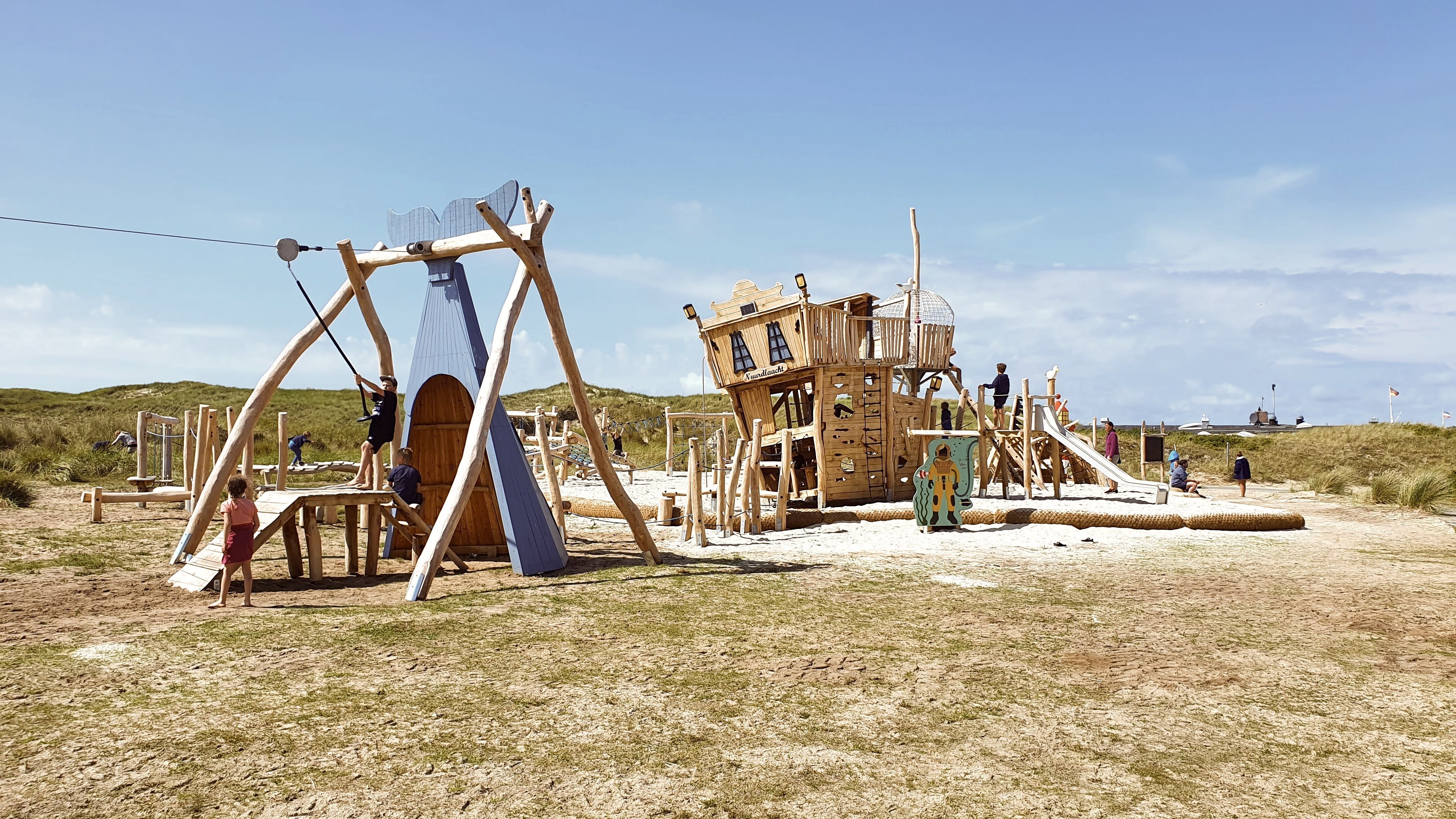 Zentrales Spielelement ist das Wrack eines alten Walfängers (Segelschiffes), welches um Beiboote, verstreute Wrackreste und Planken ergänzt wird. Die lange Seilbahn stellt einen Bezug zu früheren Strandrettungsmethoden dar.