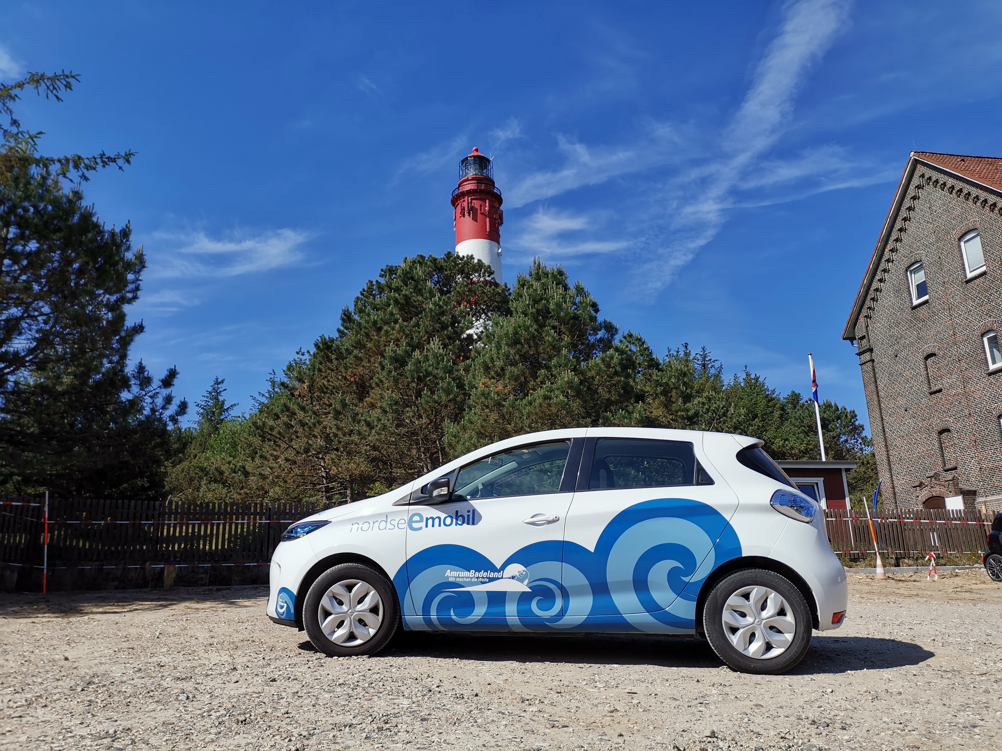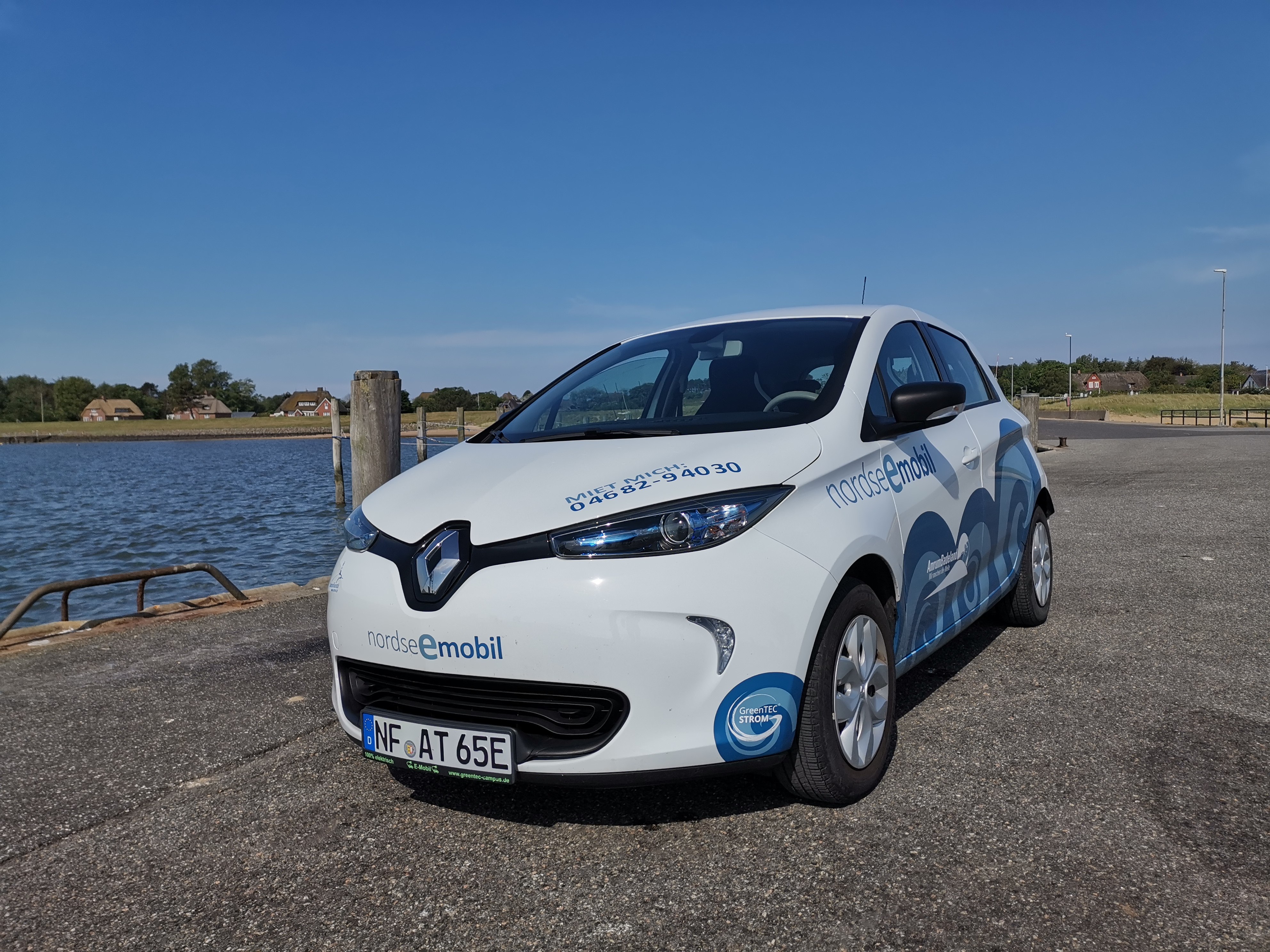 Nur 45,-EUR (ab 2 Tage = 40,- EUR pro Tag) und Sie oder Ihre Gäste können mit einem Elektroauto, dem Renault „Zoe“ auf Amrum durchstarten!